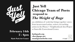 JUST YELL performed at the Hyde Park Art Center Chicago in conjunction with the exhibition WEIGHT OF RAGE featuring artwork created by men at STATEVILLE PENITENTIARY through the PRISON + NEIGHBORHOODS ARTS PROGRAM.